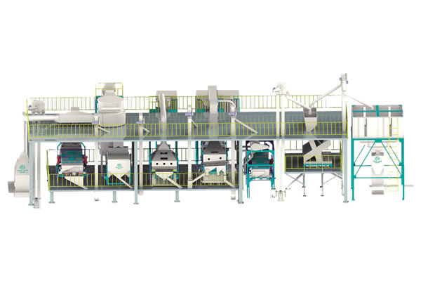 芝麻清选生产线,有几种配置。 风筛清选机-去石机-比重精选机-振动分级机-色选机-包装机 或三台风筛清选机-两台去石机-色选机-包装机 或简单的生产线,风筛清选机+去石机 主要功能是去除芝麻中的杂质。例如灰尘、稻草、小棍子、未成熟的芝麻、秕籽等,然后将芝麻自动包装成10-100kg/袋。